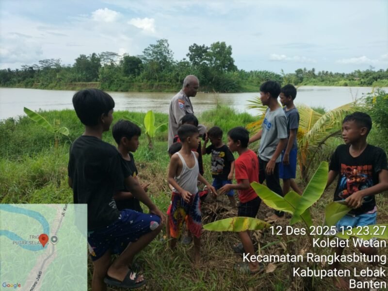LEBAK,PilarFakta.id-Personil Polsek Rangkasbitung Polres Lebak,AIPTU Heru Sasmito dan BRIPKA Juremi, terus menyosialisasikan imbauan tegas tentang pelarangan bagi anak-anak bermain di sekitar bantaran sungai.Jumat (12/12/2025)