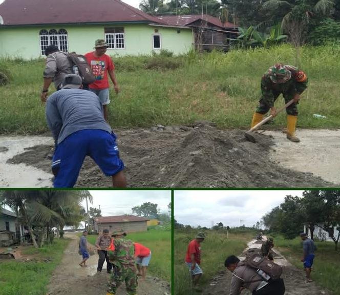 Tambang – Babinsa Koramil 07/Kampar Kodim 0313/KPR Serda Jemmi bersama warga masyarakat melaksanakan kegiatan kerja bakti gotong-royong membersihkan jalan dan menutup lubang-lubang di jalan umum dengan menggunakan batu koral. Kegiatan ini berlangsung di jalan Desa Rimbo Panjang, Kecamatan Tambang, Kabupaten Kampar, pada Sabtu,(15-11-2025).