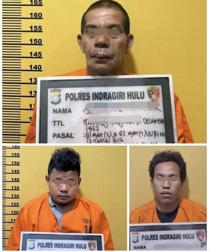 Kapolres Inhu AKBP Fahrian Saleh Siregar, S.I.K., M.Si melalui Kasi Humas Polres Inhu Aiptu Misran, SH menjelaskan bahwa pengungkapan kasus ini dilakukan oleh tim Satreskrim pada Senin (9/11/2025) malam hingga Selasa (10/11/2025) dini hari. Dari hasil penyelidikan, tiga orang terduga pelaku berhasil diamankan. Ketiganya masih memiliki hubungan keluarga dengan korban, salah satunya merupakan ayah tiri korban sendiri.
