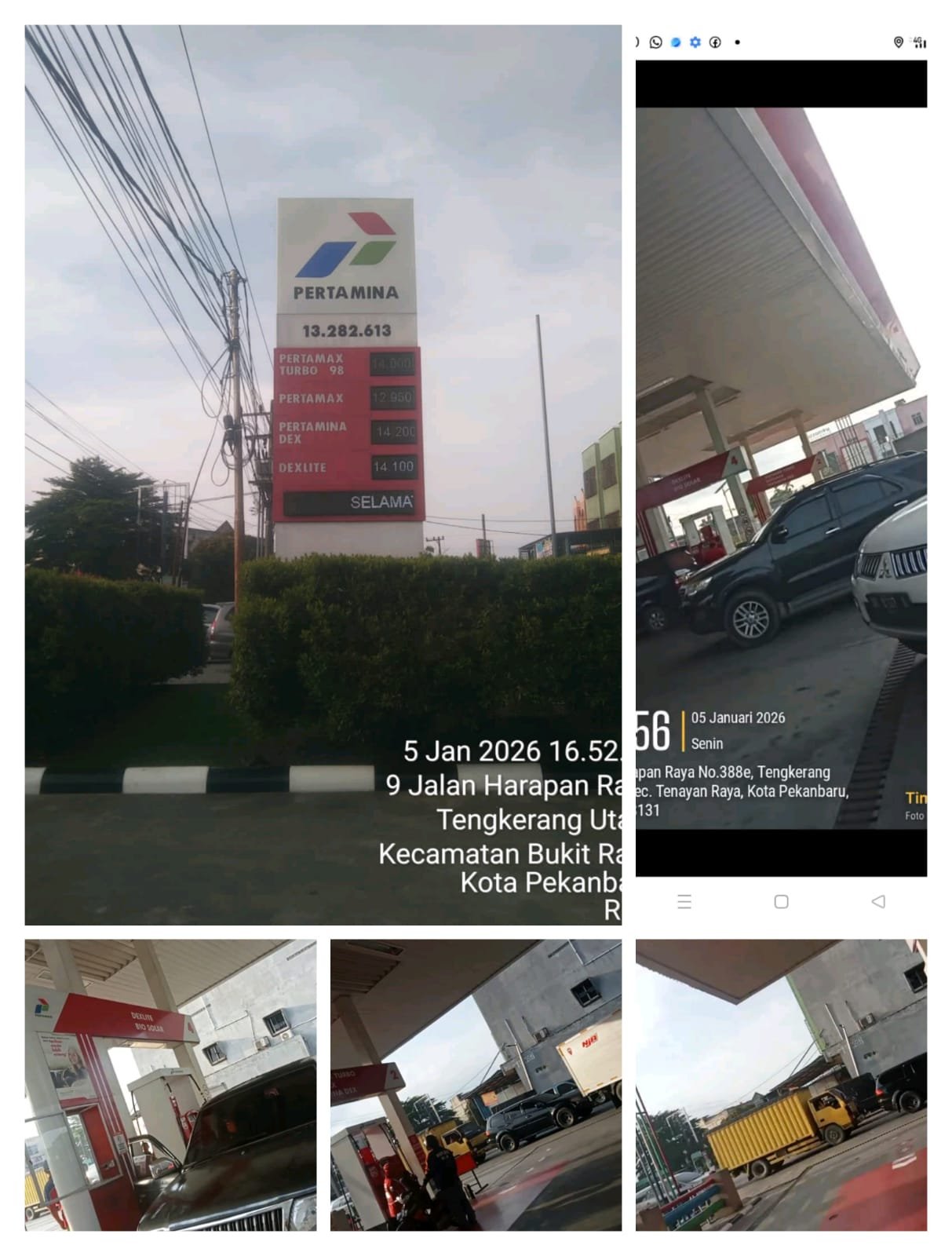 Pekanbaru 05 -januari -2026 media Humas polri, Saat tim investigasi media Humas polri turun langsung ke SPBU no 13.282.613 jalan harapan raya no 388 e Tangkerang timur kecamatan tenayan Raya kota pekanbaru Riau.