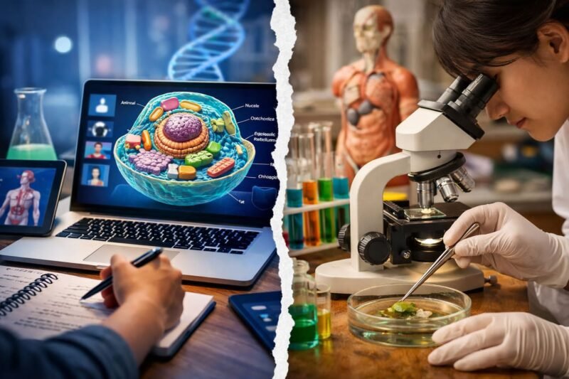 konvensional tetap memiliki peran penting dalam pembelajaran biologi. Meskipun laboratorium virtual memberikan kemudahan dan fleksibilitas, pengalaman melakukan eksperimen secara langsung tidak dapat sepenuhnya digantikan oleh simulasi digital. Melalui pengalaman tersebut, siswa belajar bahwa ilmu