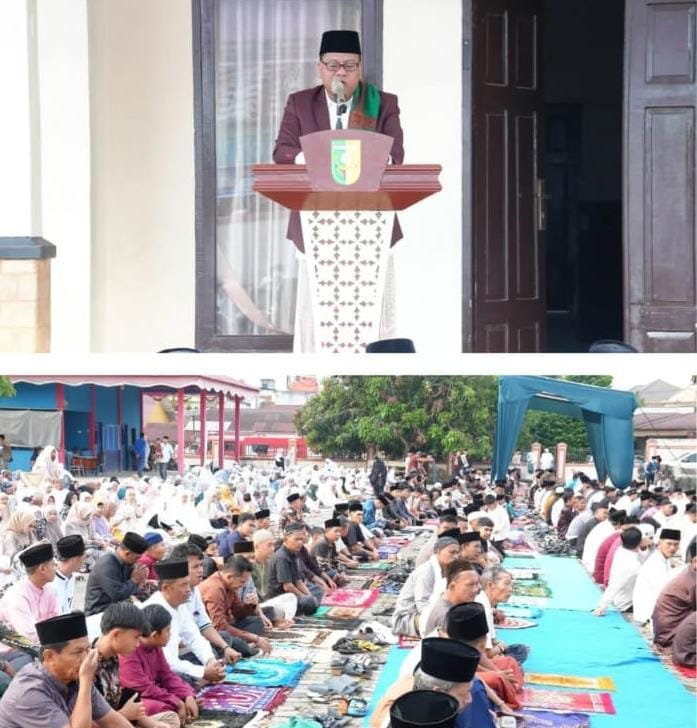 Pelaksanaan shalat Idul Fitri berlangsung khidmat dan penuh kebersamaan, dihadiri oleh jajaran pemerintah daerah, tokoh masyarakat, serta masyarakat Kecamatan Kuantan Hilir.