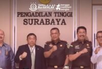 Surabaya – Kepala Kejaksaan Tinggi Jawa Timur, Agus Sahat ST, S.H., M.H., didampingi Wakajati Saiful Bahri Siregar, S.H., M.H., Asintel, Aspidum, Aspidmil dan Kabag…
