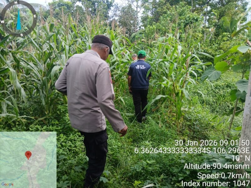 Lebak,pilarfakta.id -Kanit Binmas Polsek Rangkasbitung Polres Lebak,AIPTU Heru Sasmito dan Mantri Tani Desa Cimangeunteng,dalam rangka mendukung program ketahanan pangan nasional,sekaligus cek pertumbuhan pohon jagung hibrida.