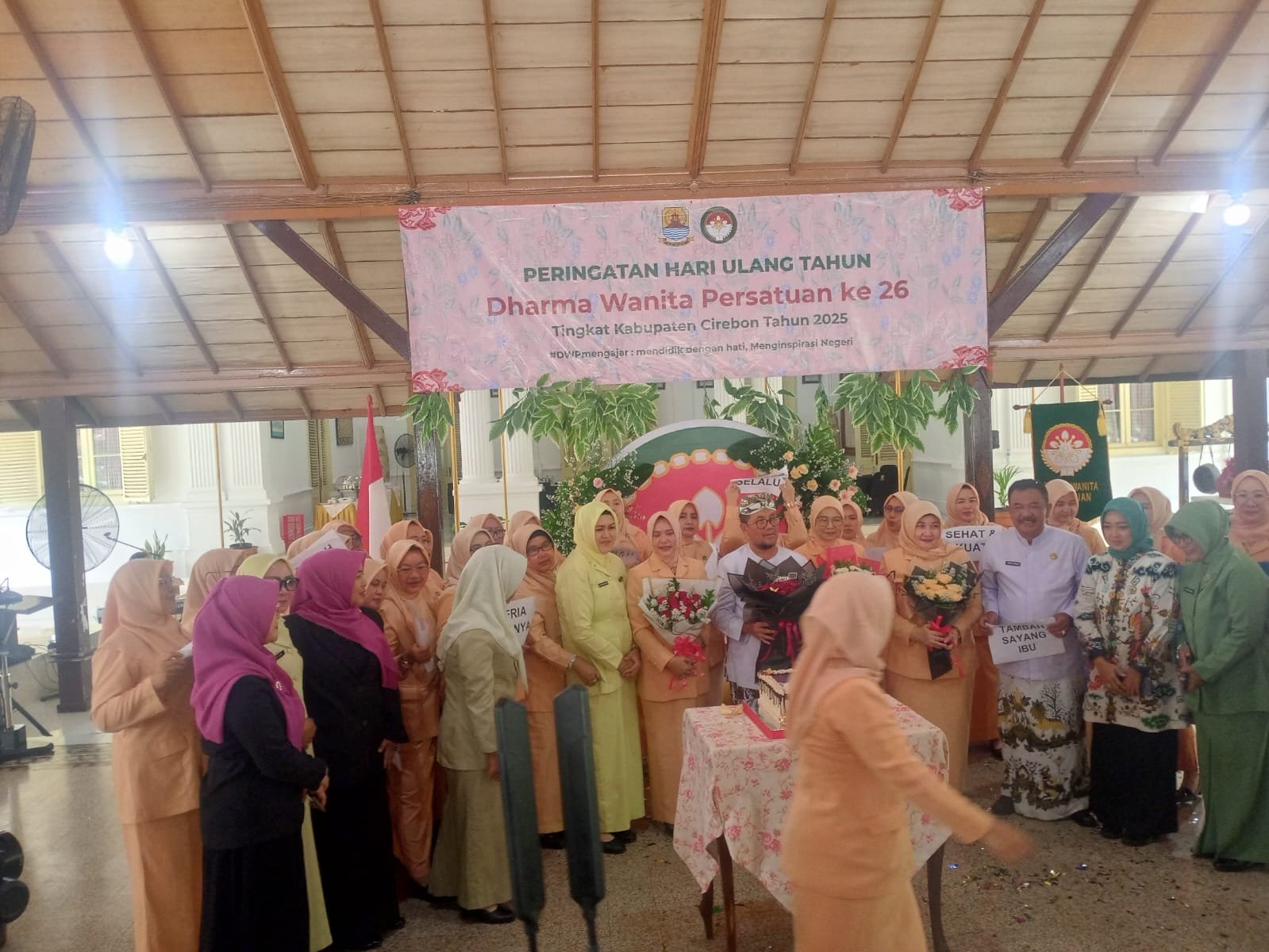 Peringatan Hut Dharma Wanita Persatuan (DWP) Ke-26 Tingkat Kabupaten Cirebon Ini Kata Bupati Imron Kabupaten Cirebon, Ny. Ella Hendra Nirmala, memimpin peringatan Hari Ulang Tahun ke-26 DWP dengan tema nasional “Peran Strategis Dharma Wanita Persatuan dalam Pendidikan Anak Bangsa untuk Indonesia Emas 2045”.