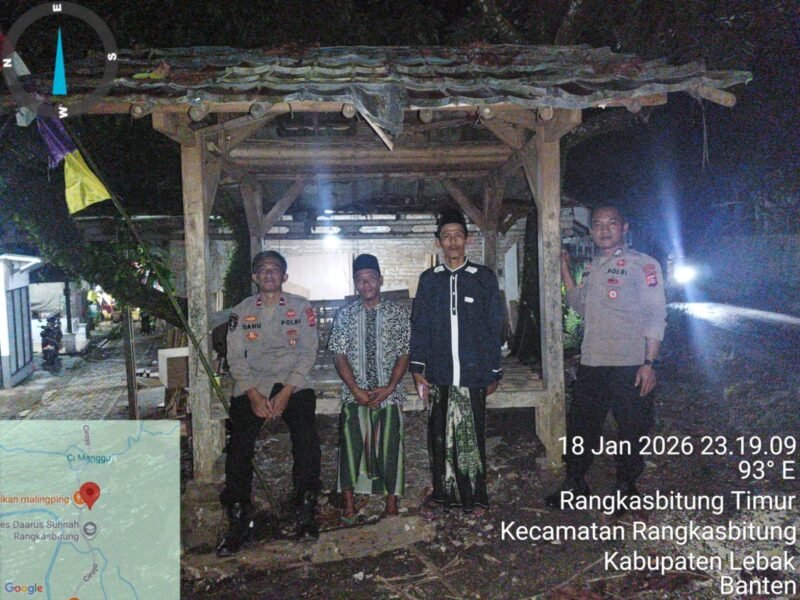 LEBAK,Banten.PilarFakta.id-Berikan rasa aman Personil Polsek Rangkasbitung AIPDA Danu Nugraha,AIPDA Wahyu Zjatmiko dan BRIPKA Agus St,Sambangi pos ronda siskamling, Kampung Cijoro Bendungan,Desa Rangkasbitung Timur, Kecamatan Rangkasbitung, Kabupaten Lebak.Minggu malam 18 Januari 2026,pukul.23.00 Wib.