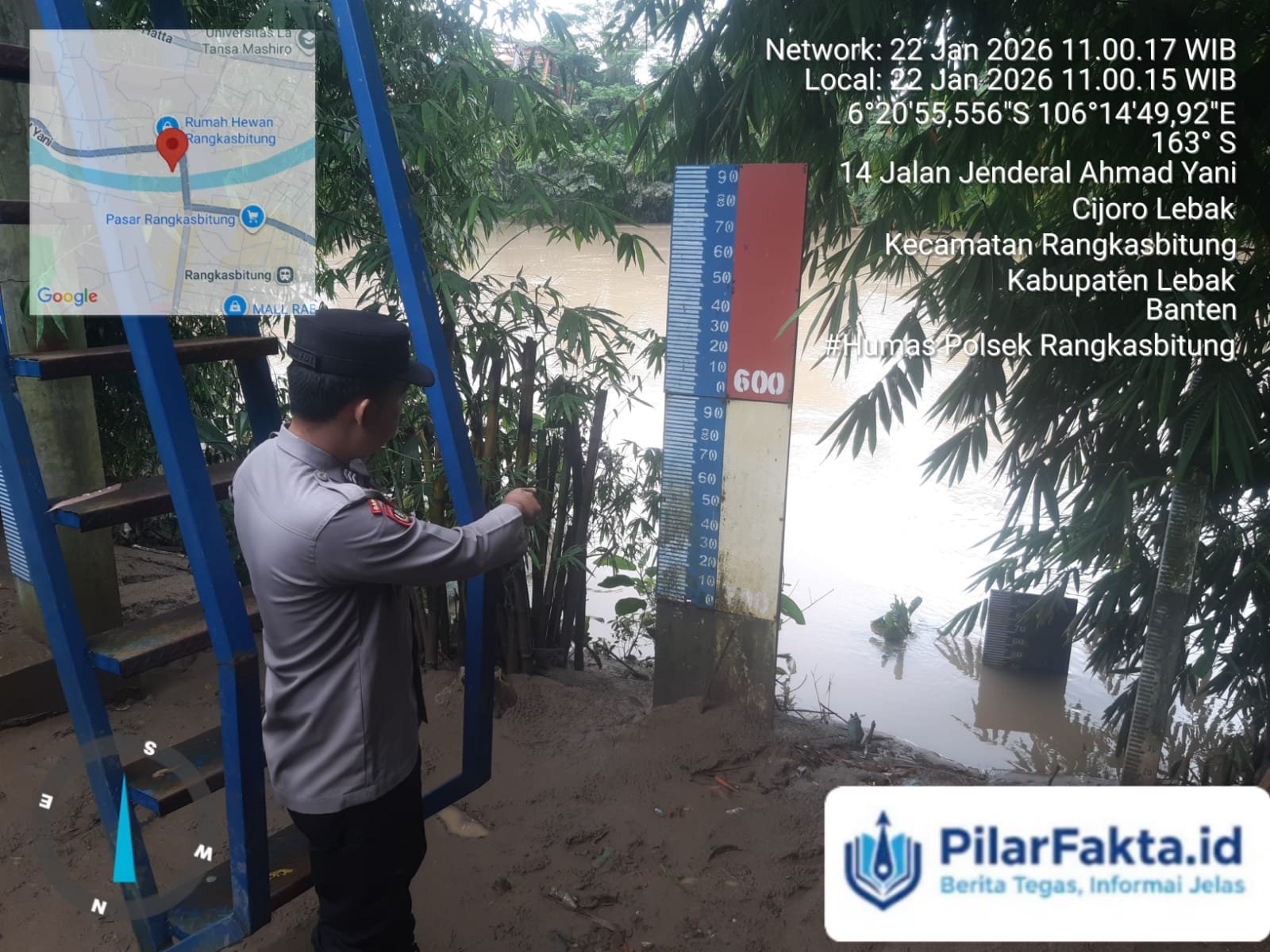 Dalam hal ini Kapolsek Rangkasbitung AKP Adi Irawan,.SH, perintahkan anggotanya untuk selalu inten melaksanakan pemantauan debit air.Kamis (22/01/2026).