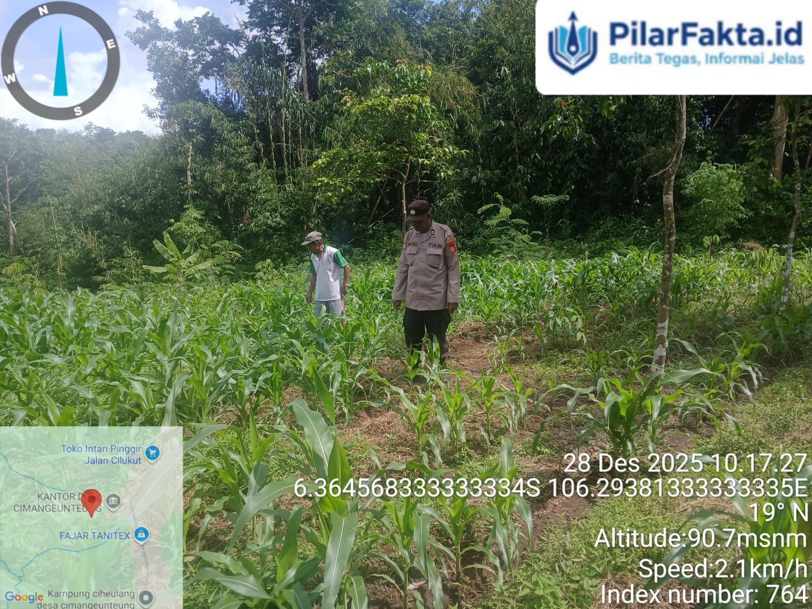 LEBAK,Banten.PilarFakta.id–Mendukung program Ketahanan Pangan,Kait Binmas  Polsek Rangkasbitung Polres Lebak,AIPTU Heru Sasmito dan kelompok tani cek bibit pohon jagung dan bersihkan rumput liar disekitaran pohon Jagung.