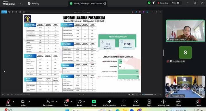 Disampaikan pula dua hal krusial yang menjadi perhatian bersama, yakni optimalisasi entry data layanan pada aplikasi Posbankum serta kesiapan pelaksanaan launching oleh Presiden. Hingga saat ini, jumlah laporan layanan Posbankum secara nasional telah mencapai 13.451 laporan dari target 80.000 laporan. Oleh karena itu, seluruh Kanwil didorong untuk lebih aktif menggerakkan paralegal agar tertib dan konsisten dalam melaporkan setiap layanan hukum yang telah diberikan kepada masyarakat.