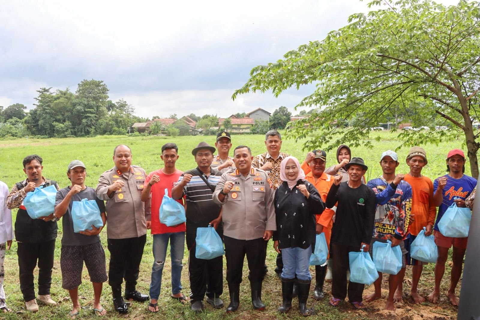 Selain melaksanakan penanaman jagung secara simbolis, Polresta Cirebon juga menyerahkan bantuan paket sembako berupa beras, mi instan, dan minyak goreng kepada kelompok tani dan masyarakat sekitar sebagai bentuk kepedulian sosial dan dukungan nyata Polri di tengah masyarakat.