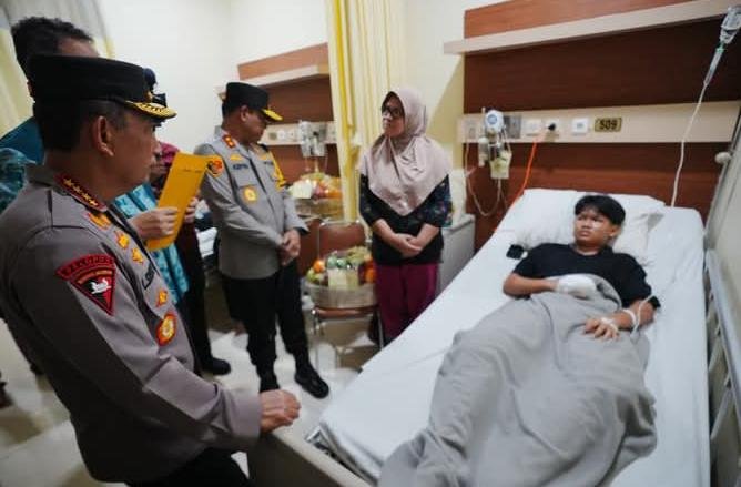 JAKARTA – Kapolri Jenderal Polisi Listyo Sigit Prabowo mengunjungi para korban ledakan di SMAN 72 Kelapa Gading, Jakarta yang kini dirawat di Rumah Sakit Islam (RSI) Cempaka Putih Jakarta, Sabtu (8/11/2025). Listyo datang didampingi oleh Kapolda Metro Jaya Irjen Pol Asep Edi Suheri dan Kapolres Metro Jakarta Pusat Kombes Polisi Susatyo Purnomo Condro.