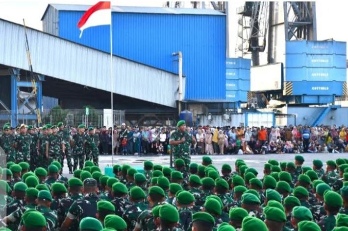 Kasdam I/BB, Brigjen TNI Deki Santoso Pattinaya memberikan arahan kepada 2.050 prajurit yang baru tiba di Belawan, Sumatera Utara