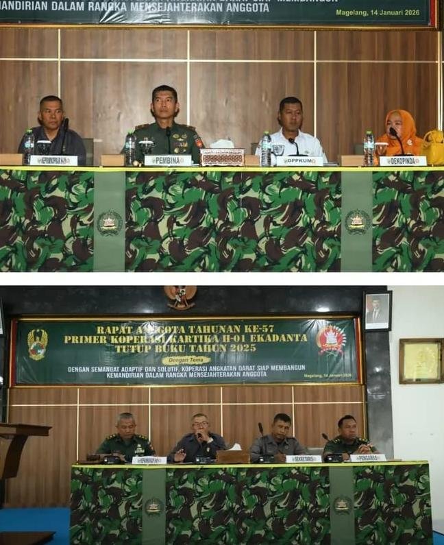 MAGELANG,pilarfakta.id -Danrindam IV/Dip, Brigjen TNI Hindratno D, S.E., M.M., M.Han membuka Rapat Anggota Tahunan Primer Koperasi Kartika H-01 Ekadanta tutup buku tahun 2025 bertempat di Aula A. Yani Makorindam IV/Dip.(Rabu, 14/1/2026)