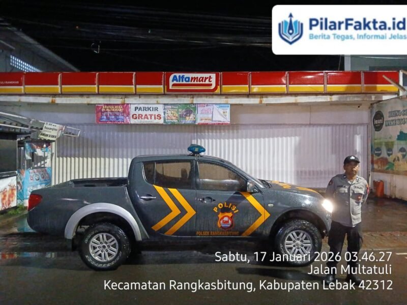LEBAK,Banten.PilarFakta.id – KSPKT I Polsek Rangkasbitung Polres Lebak,AIPTU Terry.MS dan AIPTU Deni.S,melaksanakan giat Patroli ke pertokoan Alamart di Jalan Multatuli,Kelurahan Muara Ciujung Barat,Kecamatan Rangkasbitung, antisipasi adanya gangguan kamtibmas.Sabtu pagi 17 Januari 2026,pukul.03.46 Wib.