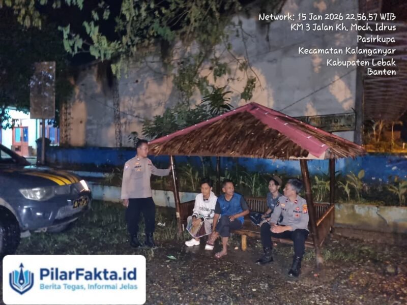 LEBAK,Banten.PilarFakta.id–Berikan rasa aman,Kspkt III Polsek Rangkasbitung AIPDA Danu Nugraha,BRIPKA Agus.St dan BRIGPOL Hari.S,Sambangi pos ronda, di Kampung Cengkel,Desa Pasir Kupa, Kecamatan Kalanganyar, Kabupaten Lebak.Kamis malam 15 Januari 2026,pukul.22.45 Wib.
