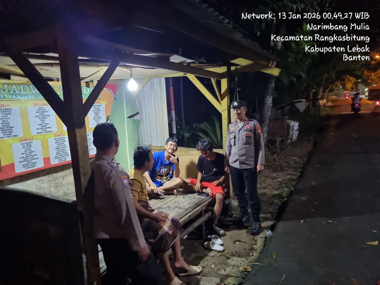 Di Posronda di Kampung Kandangsapi,Desa Narimbang Mulia,Kecamatan Rangkasbitung, Kabupaten Lebak.Selasa pagi 13 Januari 2026,pukul.00.45 Wib.