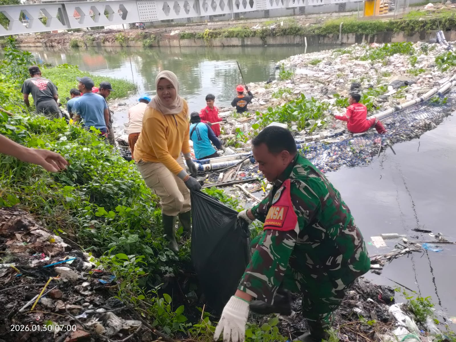 Kota Cirebon,pilarfakta.id,Jum’at, 30/1/2026), — Babinsa Kelurahan Panjunan Serka Suprapto bersama Lurah Panjunan Komalawati, S.I.P melaksanakan kegiatan kerja bakti pembersihan sampah pada trash barrier Sungai Sukalila yang berada di kawasan Kali Baru Selatan, Kelurahan Panjunan, Kecamatan Lemahwungkuk, Kota Cirebon.
