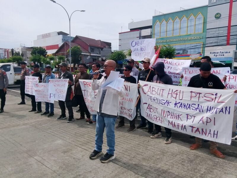 Bengkulu,pilarfakta.id – Aksi damai di depan Kejaksaan tinggi Bengkulu yang di lakukan oleh yayasan Lingkungan hidup sebar kamis,12/02/2026 ada juga hal menarik yang di lontarkan oleh orator Ishak Burmansyah.