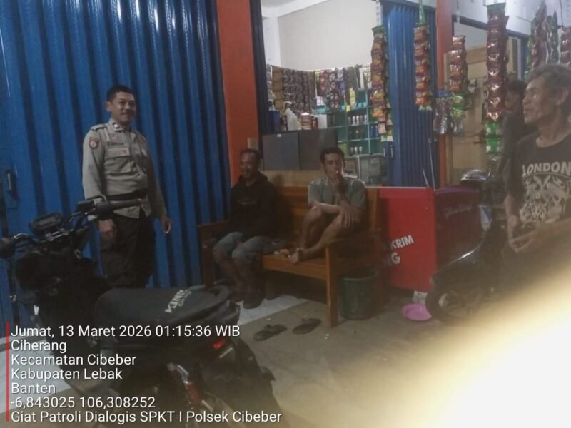 Lebak,pilarfakta.id – Menjelang Waktu Sahur Personil Polsek Cibeber Polres Lebak Laksanakan Giat Patroli dalam rangka Antisipasi C3 dan Gangguan Kamtibmas Aiptu Edi Supriyadi (Kanit Binmas) Polsek Cibeber Polres Lebak bersama anggota piket jaga mako melaksanakan giat patroli dialogis disekitarn Desa Ciherang dan warungbanten, Kecamatan Cibeber, Kabupaten Lebak, Jum’at (13/03/2026 )