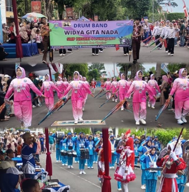 Penampilan drum band Widya Gita Nada SMP Negeri 4 Lumajang menjadi salah satu daya tarik utama dalam perayaan HARJALU ke-770, sekaligus membuktikan bahwa pelajar Lumajang memiliki potensi seni dan kreativitas yang luar biasa.