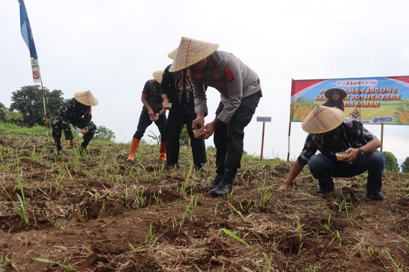 Kapolres Kuningan AKBP Muhammad Ali Akbar. turut mengikuti penanaman jagung di Desa Gunungkeling, Kecamatan Cigugur Kabupaten Kuningan dengan luasan lahan mencapai 0,42 hektare. Kegiatan tersebut juga terhubung secara serentak dengan jajaran Polda Jabar.