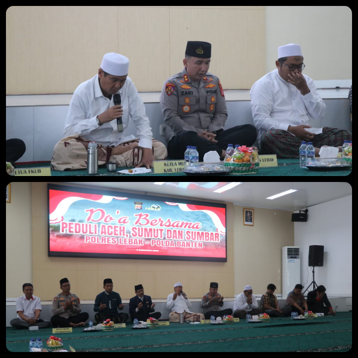 Lebak,PilarFakta.id– Sebagai bentuk kepedulian dan empati terhadap para korban bencana alam di Aceh, Sumatera Utara, dan Sumatera Barat, Polres Lebak Polda Banten menggelar kegiatan Doa Bersama Peduli Aceh, Sumut, dan Sumbar yang bertempat di Aula Bawah Polres Lebak, Senin (8/12/2025) sore.