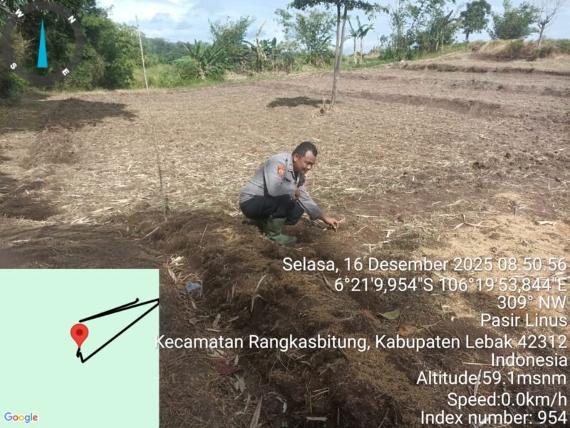 “Ya,pagi ini anggota Polsek Rangkasbitung,AIPTU Rahmat Subiakto,cek kebun jagung dan bersihkan rumput liar agar bibit jagung terlihat subur.