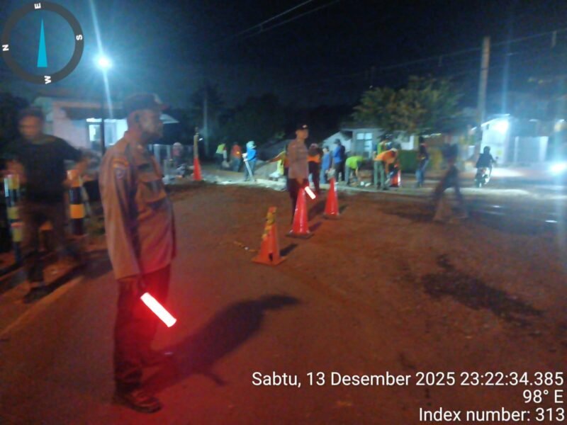 Melaksanakan gatur lalin di perlintasan kereta api bangarum,Desa Jatimulya,Kecamatan Rangkasbitung,Kabupaten Lebak.Sabtu malam 14 Desember 2025,pukul 23.00 Wib.