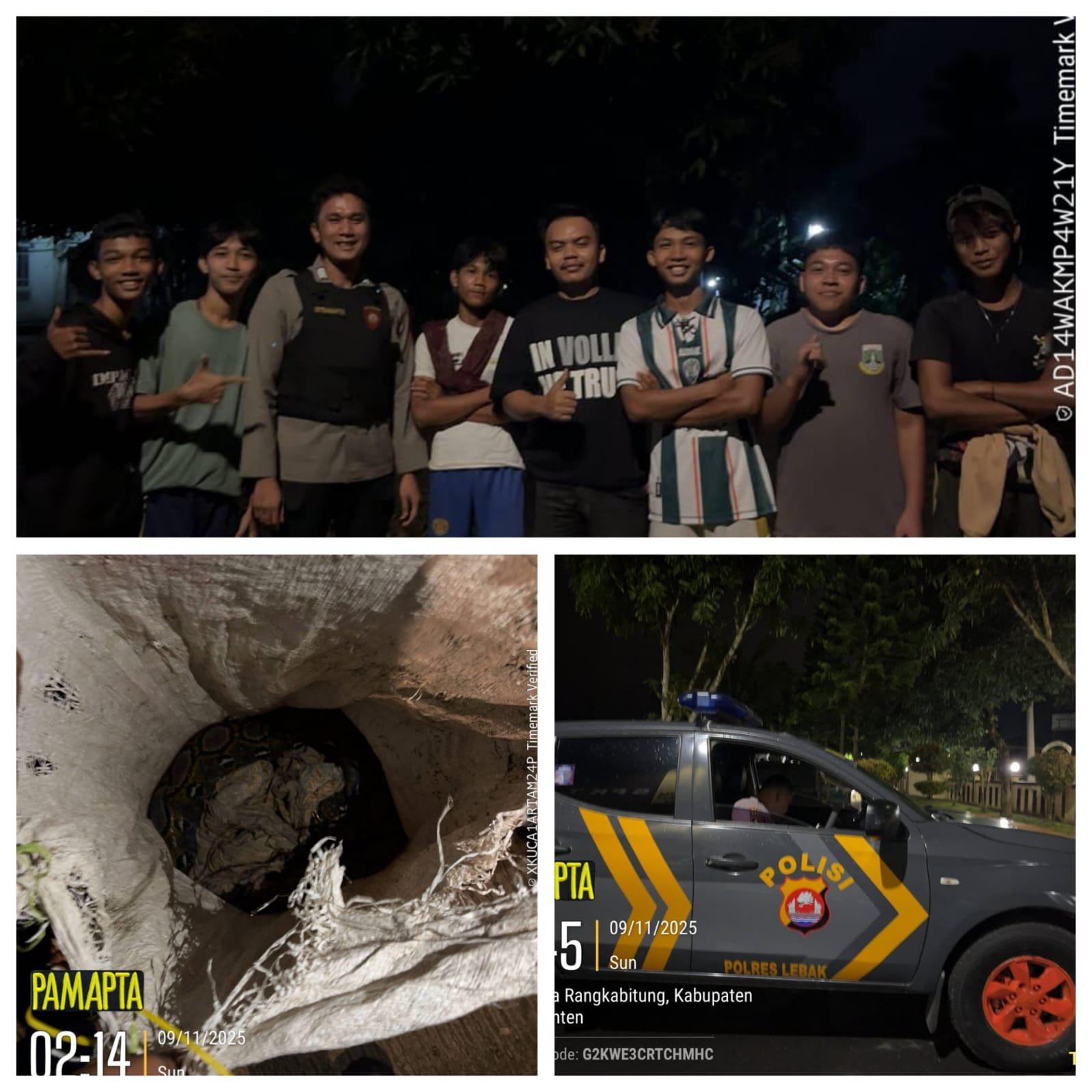 Setibanya di lokasi sekitar pukul 01.45 WIB, petugas yang terdiri dari personel Pamapta III Polres Lebak dan SPKT berkoordinasi dengan warga untuk mengamankan ular tersebut.