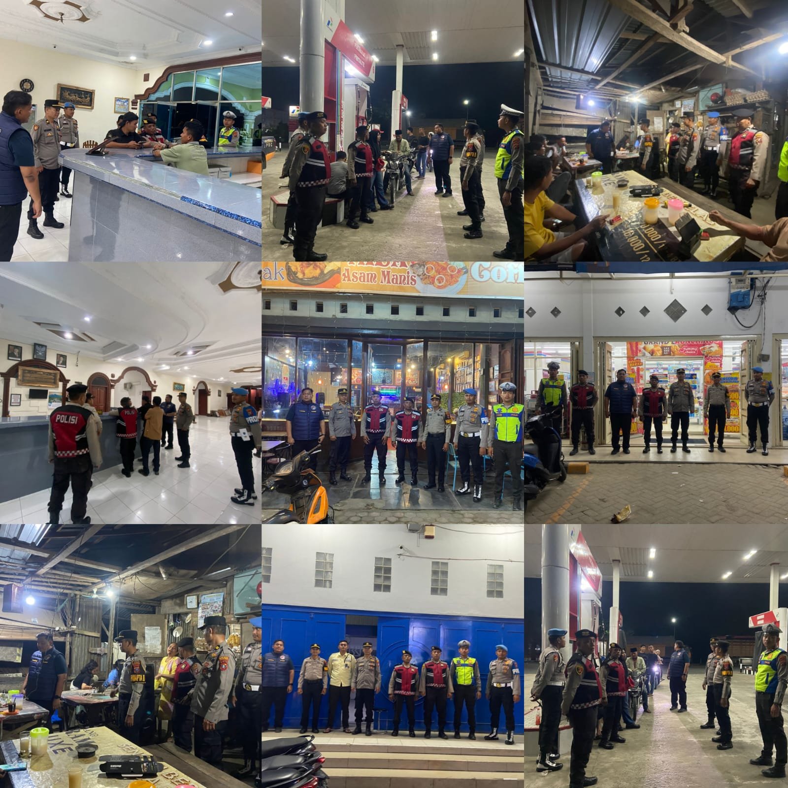 Patroli dimulai sejak pukul 21.00 WIB dan menyasar sejumlah titik rawan yang menjadi pusat aktivitas masyarakat pada malam hari.Beberapa lokasi yang menjadi fokus pengamanan di antaranya Hotel Istana,warung tuak,Indomaret Simpang Bukit,SPBU Bedage,Bank BRI,serta kafe dan tempat nongkrong yang masih beroperasi hingga larut malam.