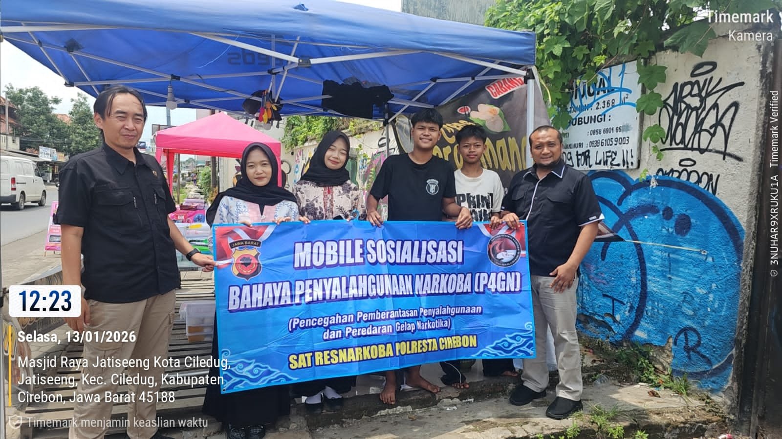 Satuan Reserse Narkoba (Satresnarkoba) Polresta Cirebon menggelar Mobile Sosialisasi tentang Bahaya Penyalahgunaan Narkoba, Selasa (13/1/2026). Kegiatan tersebut berlangsung di tiga lokasi berbeda di wilayah Kecamatan Ciledug, Kabupaten Cirebon.