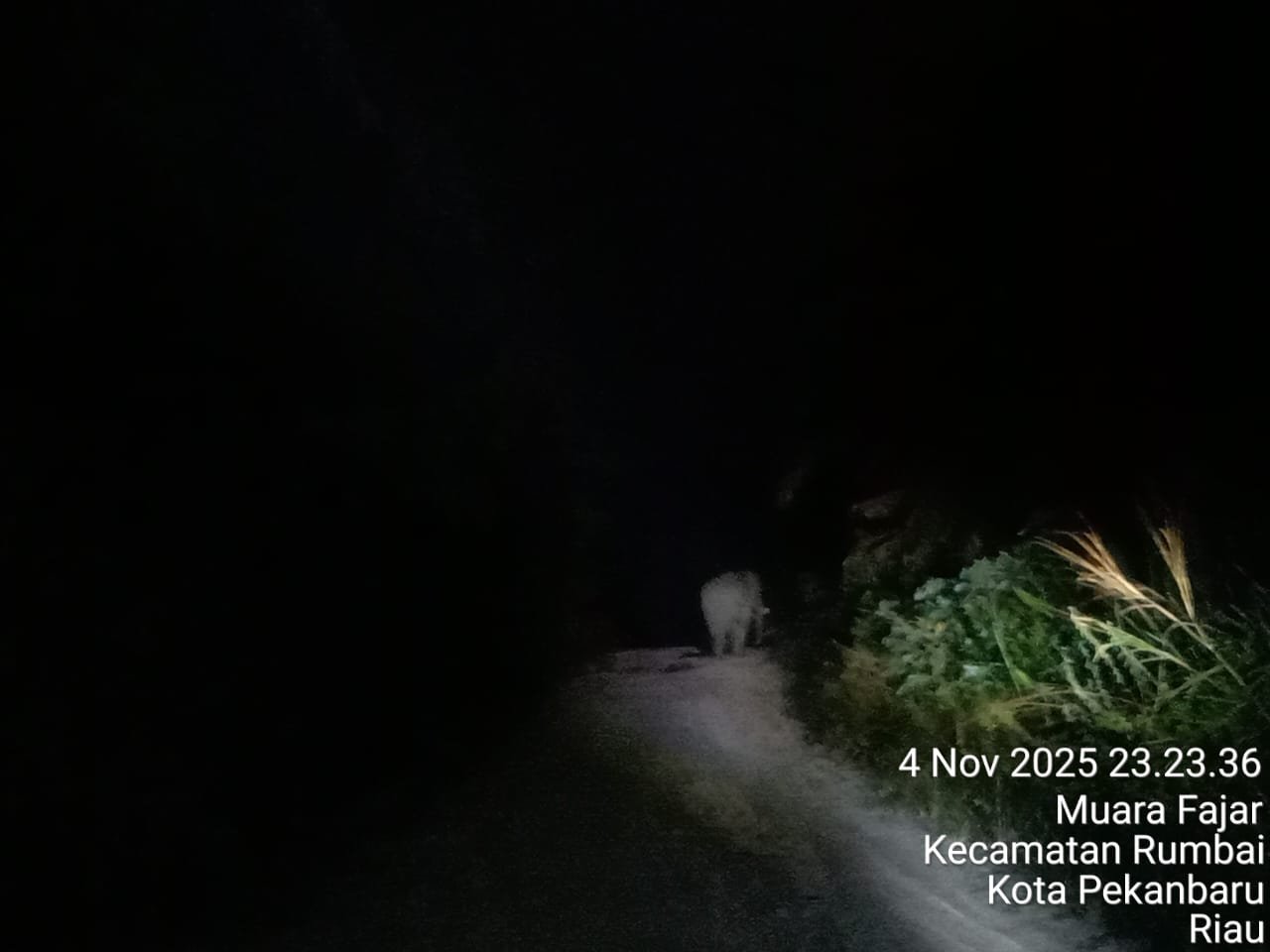 Pekanbaru. – Masyrakat Meminta Kepada BBKSDA Dan DLHK Untuk Lebih Memperhatikan Gajah Yang Sudah Masuk Di Pemukiman Masyarakat Rantau panjang Rumbai barat ,Pekanbaru hari Senin ,04-11-2025 Pukul 23:36 Wib dini hari