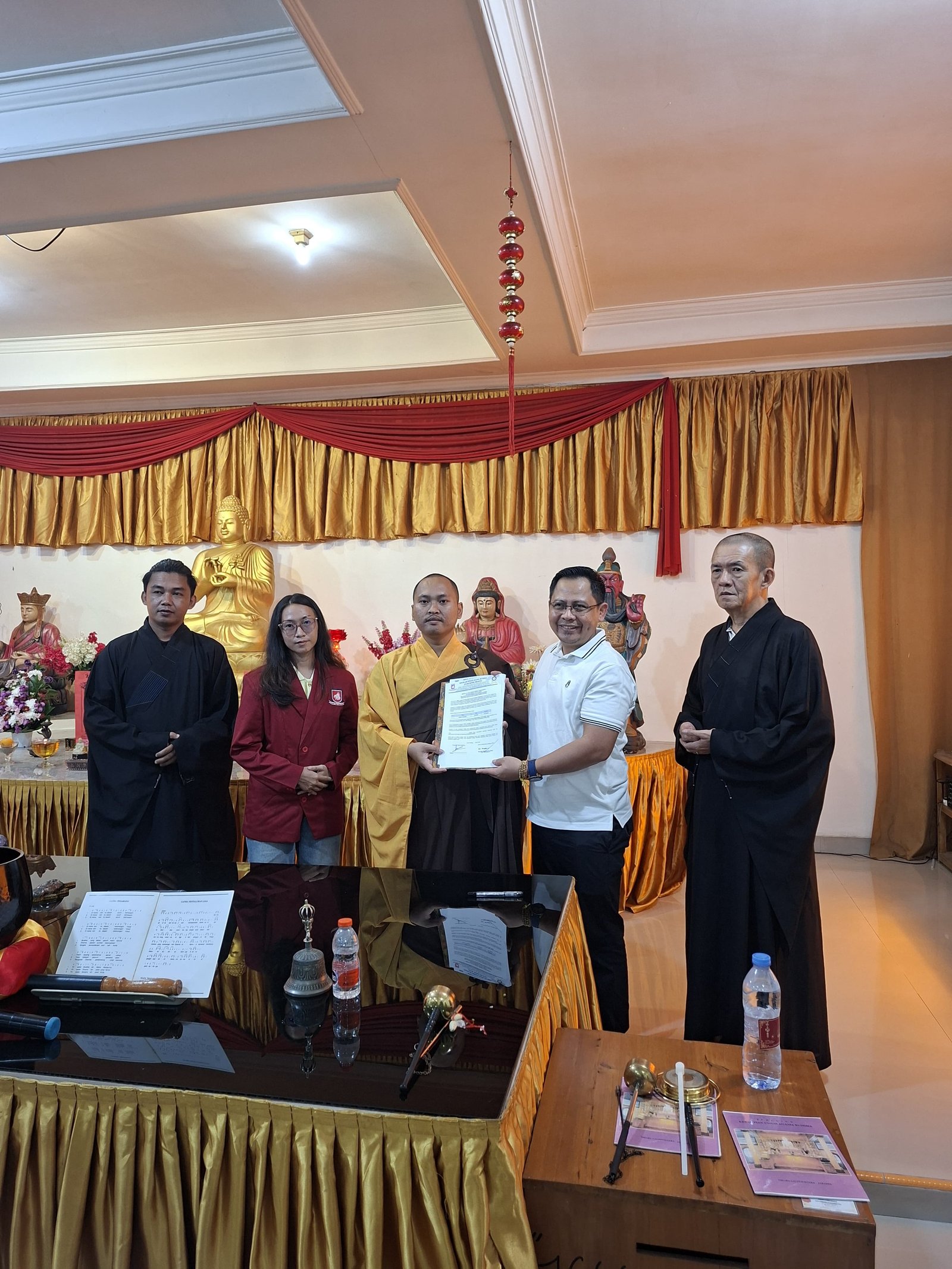 Penyerahan mahasiswa KKN diterima langsung oleh Ketua Vihara Nagarjuna, Bhiksu Dutra Sutra. Dalam sambutannya, beliau menyampaikan harapan besar terhadap kontribusi mahasiswa dalam mendukung pembinaan umat Buddha serta peningkatan kualitas pendidikan bagi Siswa Sekolah Minggu Buddha (SMB).