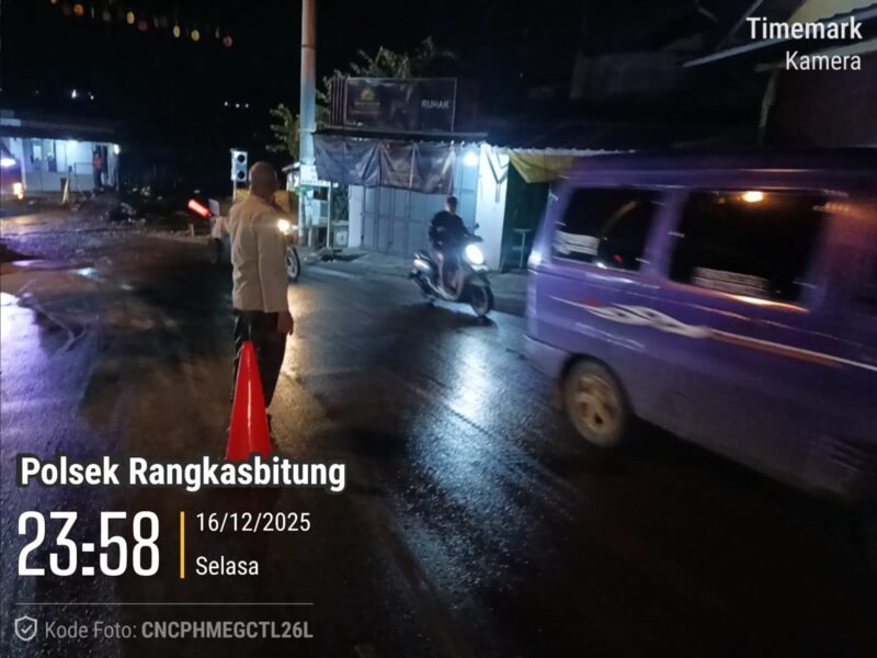 Melaksanakan gatur lalin di perlintasan kereta api bangarum,Desa Jatimulya,Kecamatan Rangkasbitung,Kabupaten Lebak.Selasa 16 Desember 2025,pukul 23.58 Wib.