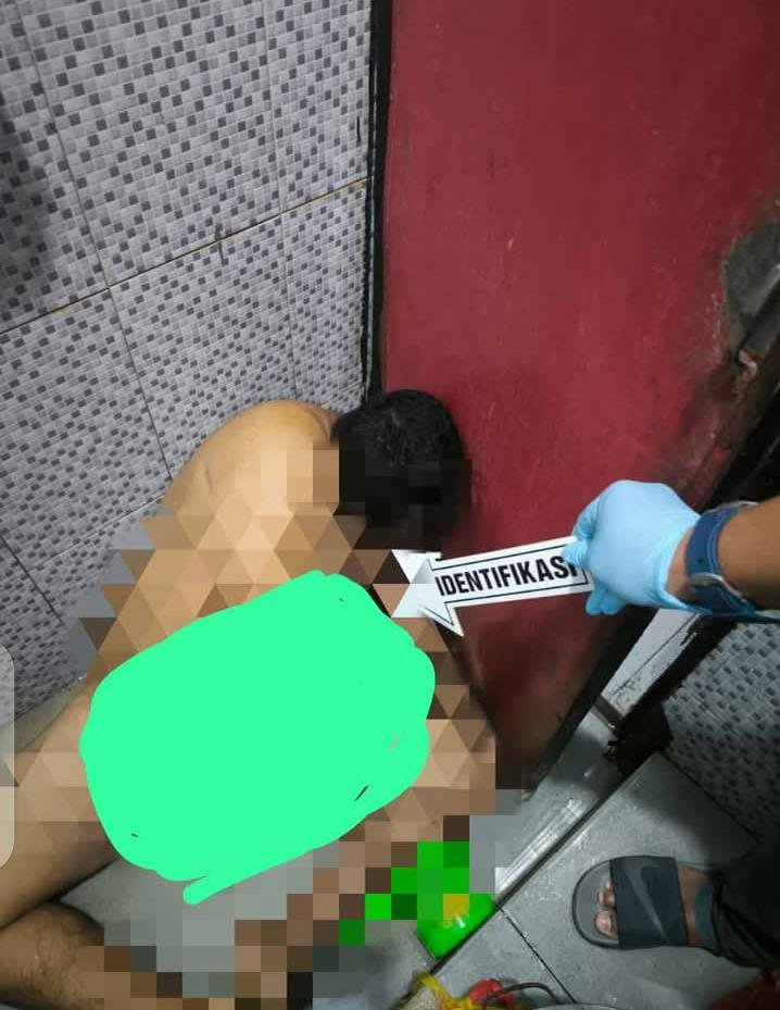 “Selanjutnya piket reskrim melakukan olah TKP di temukan bahwa benar korban seorang laki-laki sudah tidak bernyawa lagi dalam kondisi tidak menggunakan pakaian (telanjang) posisi duduk menyandar kearah pintu, kondisi keran dalam keadaan masih mengalir,”pungkasnya.
